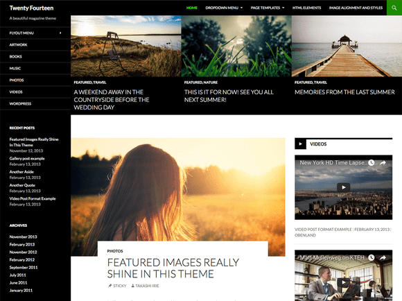 2013年になると、メインターゲットがスマートフォンに移行します。このテーマは、特にスマートフォンファーストに大きく舵が切られています。目を引く大きなヘッダ画像と、縦長でシンプルなデザインが採用されました。まだ多くのスマートフォンは画面が小さかったため、メインコンテンツに絞った表示に回帰していきました。